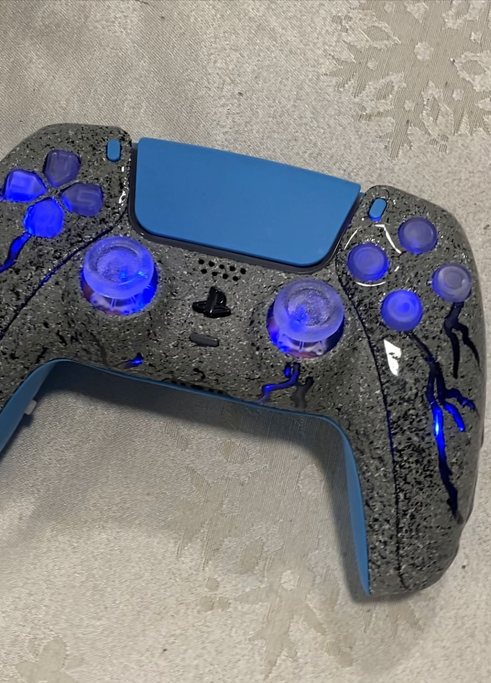 PS5 cracked rock purple pink controller techfire custom made playstation5